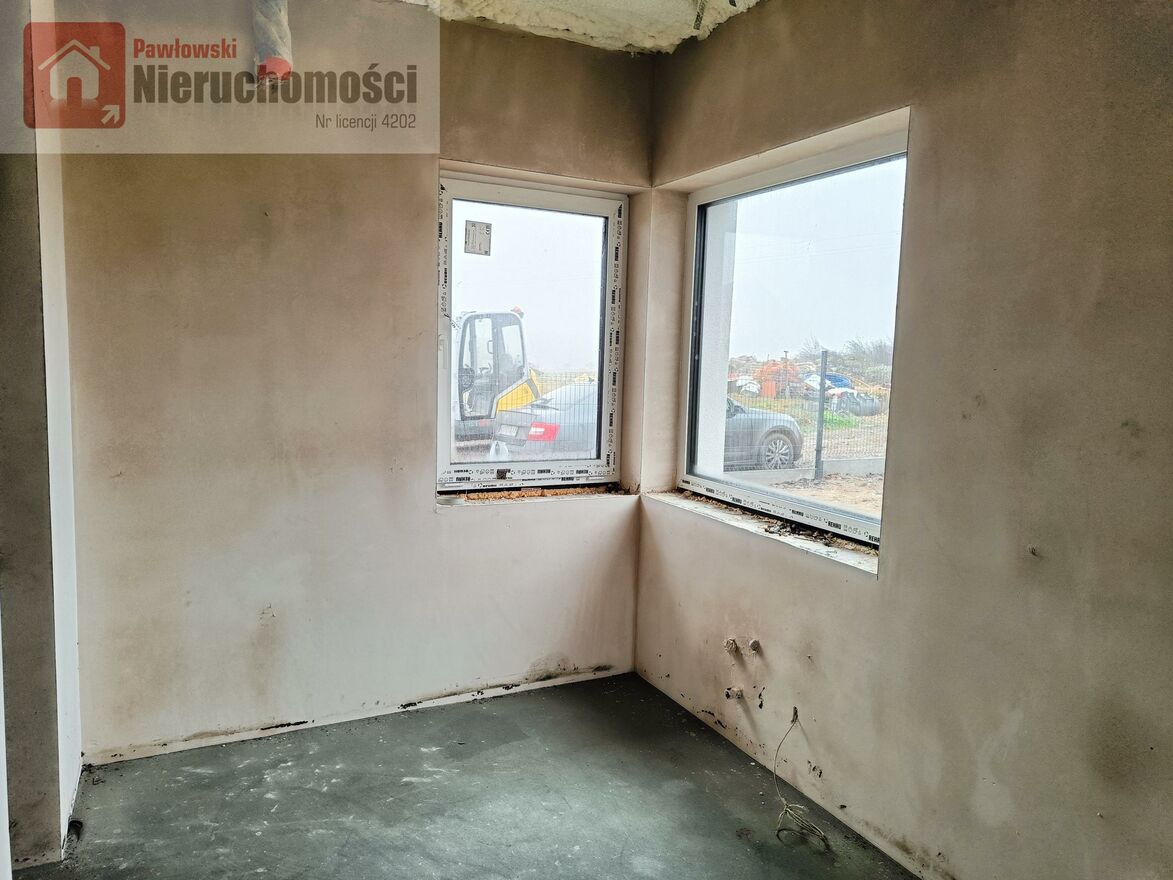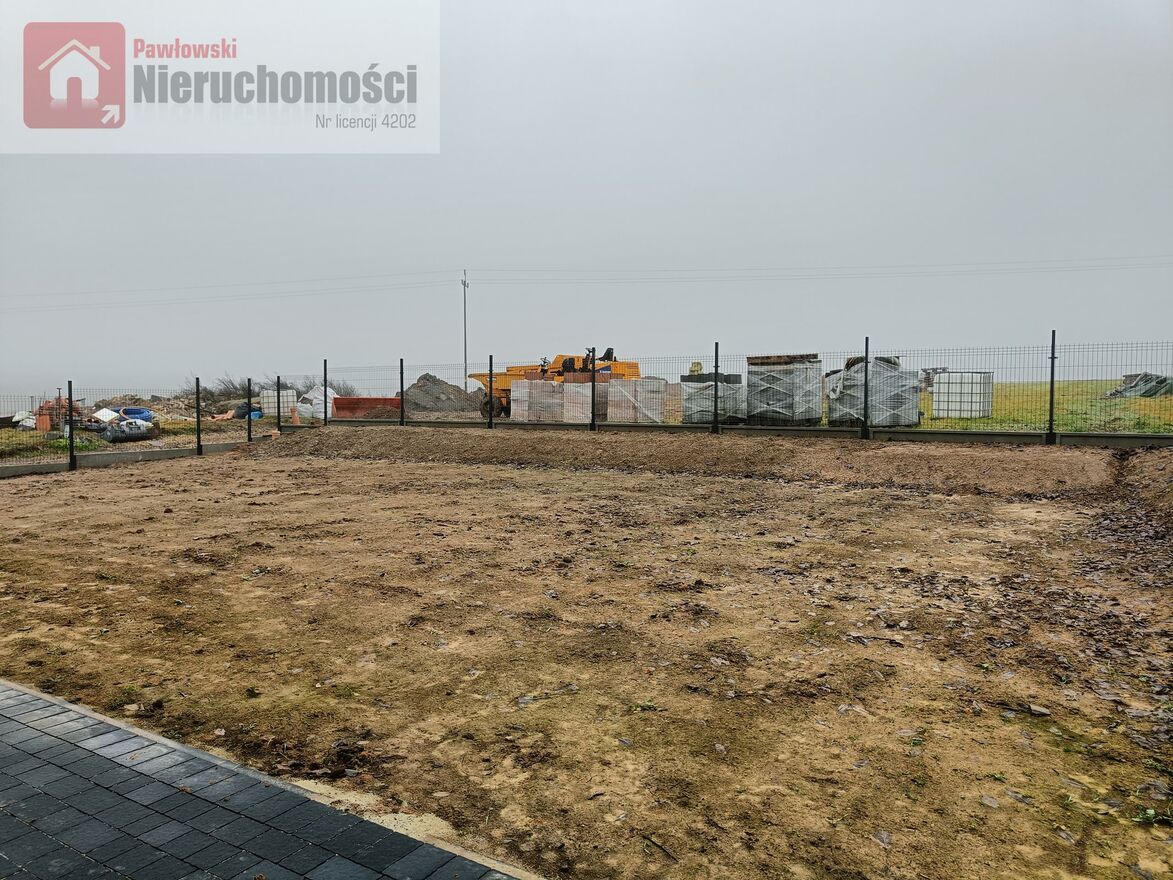 Działka na której znajduje się budynek ma powierzchnię 600 mkw. Działka będzie ogrodzona, z wykonaną bramą wjazdową i furtką. Taras i opaska wokół budynku wykonane z kostki brukowej. Droga wewnętrzna i miejsca postojowe utwardzone tłuczniem.