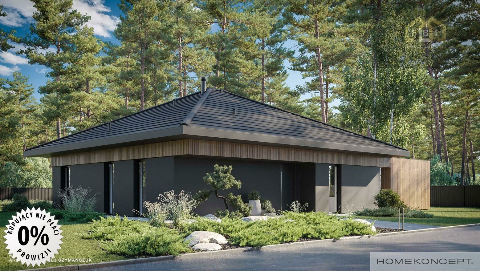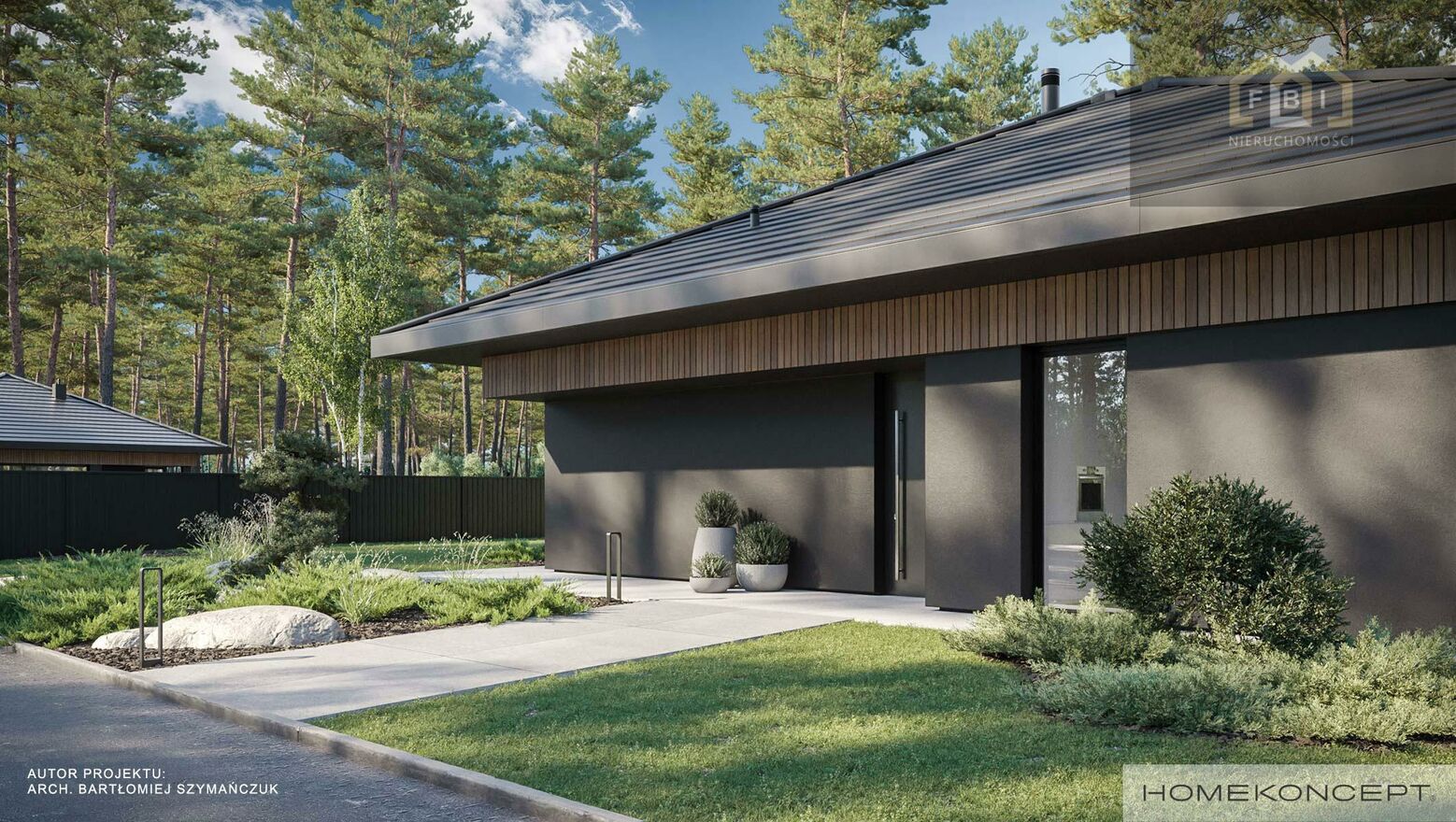 Budynek w stanie surowym zamkniętym budowany według projektu HOMEKONCEPT 97 w technologii tradycyjnej z pustaka 24 cm H+H, dach pokryty dachówką BRAAS; okna PCV trzyszybowe. Działka ogrodzona z trzech stron, podjazd utwardzony